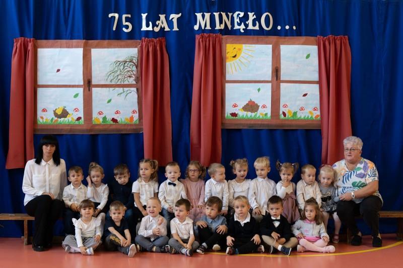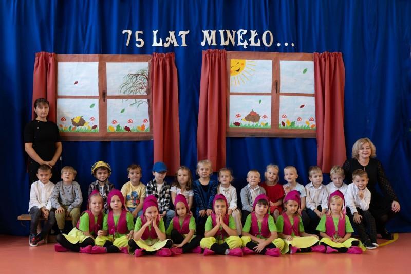 w rozwoju, stosujemy aktywne metody nauczania i wychowania. Kształtujemy umiejętności współdziałania w grupie poprzez wspólną naukę i zabawę. Posiadamy interesującą ofertę zajęć dodatkowych. Rzetelnie informujemy Rodziców o rozwoju dziecka, zachęcamy ich do współpracy jako cennych partnerów w wychowaniu dzieci. W 2024 roku obchodziliśmy jubileusz 75- lecia naszego Przedszkola.